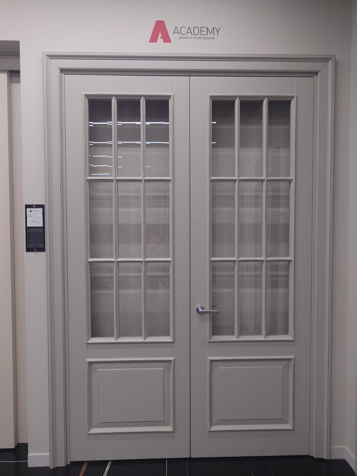 Полотно тамбуратное из инженерного массива (МДФ + ламельный/листельный массив лиственных пород) толщиной 50 мм. с повышенной шумоизоляцией,окра шенное матовыми красками итальянского производства SIRCA с эффектом «soft touch» по шкале RAL с возможностью двусторонней окраски. Объемные филенки, стекла крепятся к полотну с помощью фигурных штапиков (багетов).