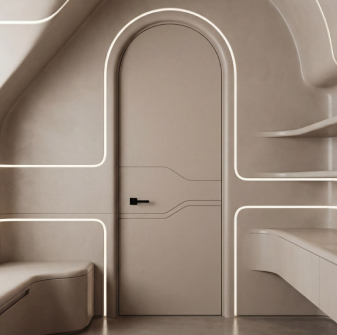 - Монолитные двери: Представляют собой сплошную гладкую панель без каких-либо декоративных элементов. Они идеально подходят для минималистичных интерьеров, где важен акцент на простоте и чистоте линий.